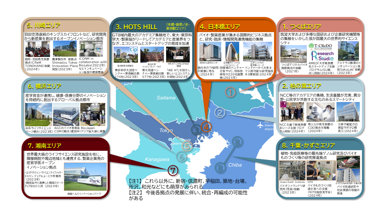 地域バイオコミュニティ、東京コンソーシアム-スタートアップエコシステム、COI-NEXT「つくばデジタルバイオ国際センター」など。